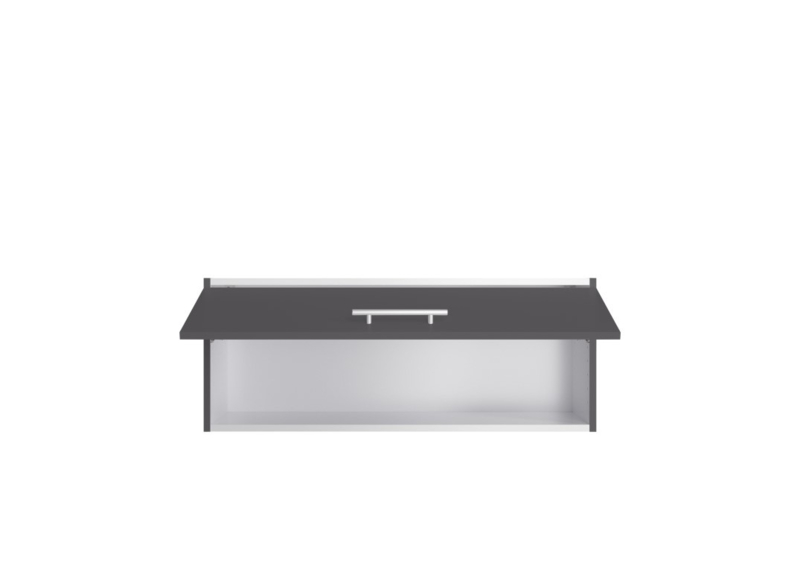 De Ingvar serie heeft een mat antraciet front en ombouw. de klepkast die u op de foto ziet heeft de afmetingen van 90 x 35,2 x 34,6 cm en heeft een klepdeur en een legplank.